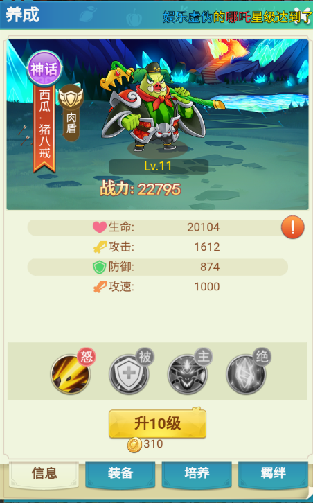 2、猪八戒作为肉盾,而嫦娥具有控制魅惑效果,嫦娥存活时还可减少敌方怒气值,八戒与嫦娥羁绊效果为死缠烂打,升星至10星可增加80%攻击;