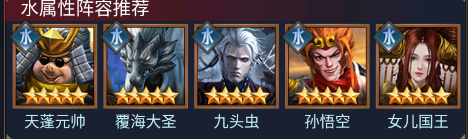 该阵容兼顾了攻击和防御,有天蓬元帅来抵挡伤害,二郎神、哪咤、齐天大圣作为输出者,女儿国王在后方辅助,此乃万金油之阵,可应对多种战斗情况。