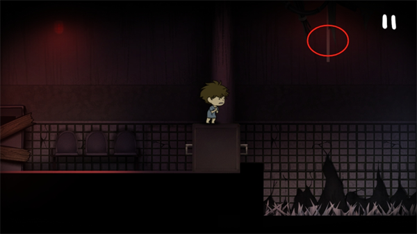在角色身后有一个大箱子,玩家需要将箱子推到指定位置。然后跳上箱子顶部,在上面再次跳跃,并抓住中间的绳子。通过左右晃动屏幕,让角色跳到对面的平台。