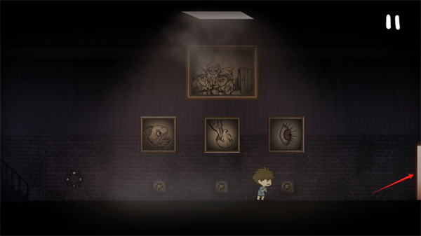 玩家需要根据上面图画的眼睛来转动下方的三张小图片,根据提示转到将图片转到如图所示的形象时,左边就会出现一道光门,玩家直接走过去就能通关了。