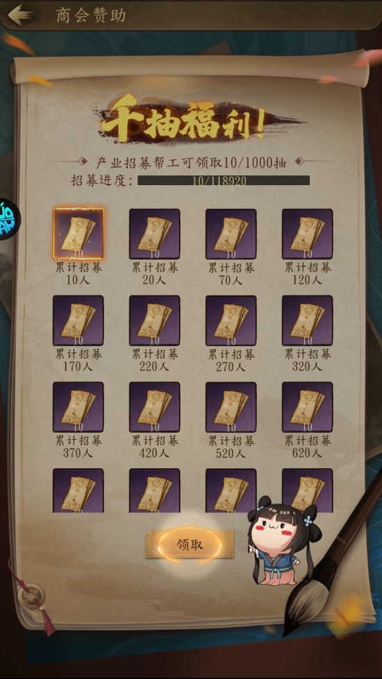 8、记得去商会界面找到对应按钮,领取 “千抽福利” 这份奖励。