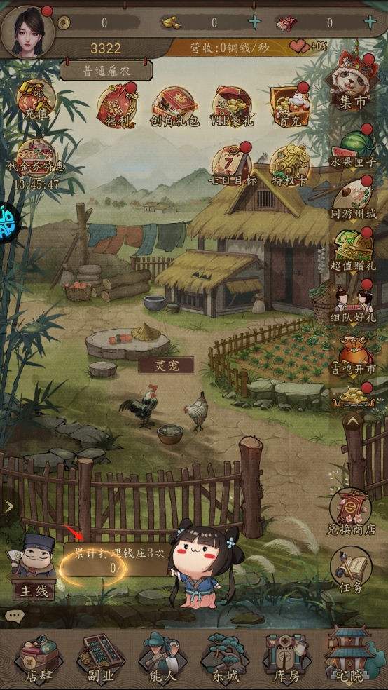 大当家之路0.1折版是一款古风模拟经营手游,此版本内玩家可享永久的0.1折充值福利,即充值128只需1.28,且还能领取海量的道具福利礼包!游戏中,玩家将在这座宋代古城开启传奇商途,你需要通过策略经营店铺、投资作坊、招募人才,逐步扩展商业版图,一步步成为一代商业大亨。