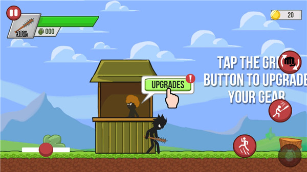 操作非常简单,玩家扮演一名勇敢的火柴人战士,开始闯关冒险。在游戏中会遇到各种僵尸攻击,你需要不断消灭敌人,生存下去并到达终点。