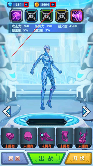3、获得机甲后逐步的将机甲装备进行穿戴;