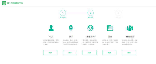 4、激活后、我们选择要入驻的类型、个人注册就选择个人类型。单个身份证目前可以注册两个趣头条自媒体账号。