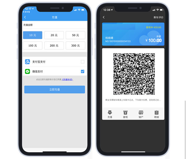 3、第三步:向【电子公交卡】中进行充值后,可以看到乘车二维码,即可进行【扫码乘车】。