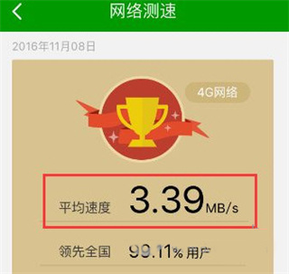 3、待测速完成之后,在“网络测速”页面我们就能看到自己网速的平均速度了。