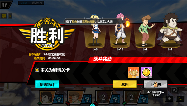 2、战斗为全自动,等待片刻即可获通关奖励。