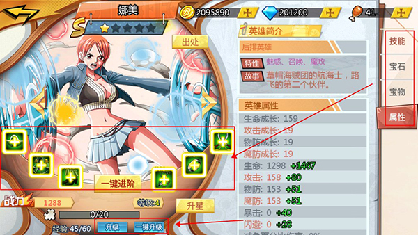 6、获取到足够的资源后,就可以对英雄进行升级提升啦,还可以给其穿戴装备,解锁技能等,大幅增加其战力。
