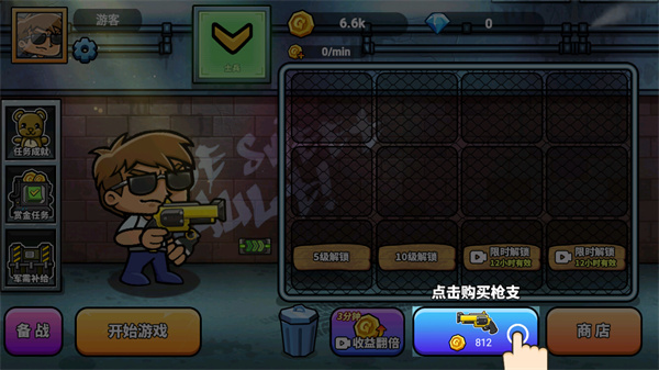 2、可以拖动相同等级的枪支来合成更高等级的枪支;