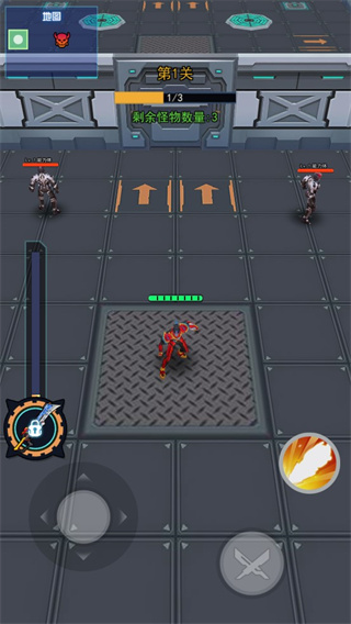 3、游戏的操作非常的简单,左边是控制铠甲的方向,右边则是攻击了;