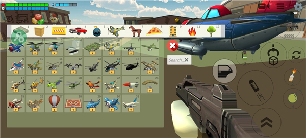 4、购买了进入地图,点击左上角的方块选项,就可以选择你购买的飞机等资源