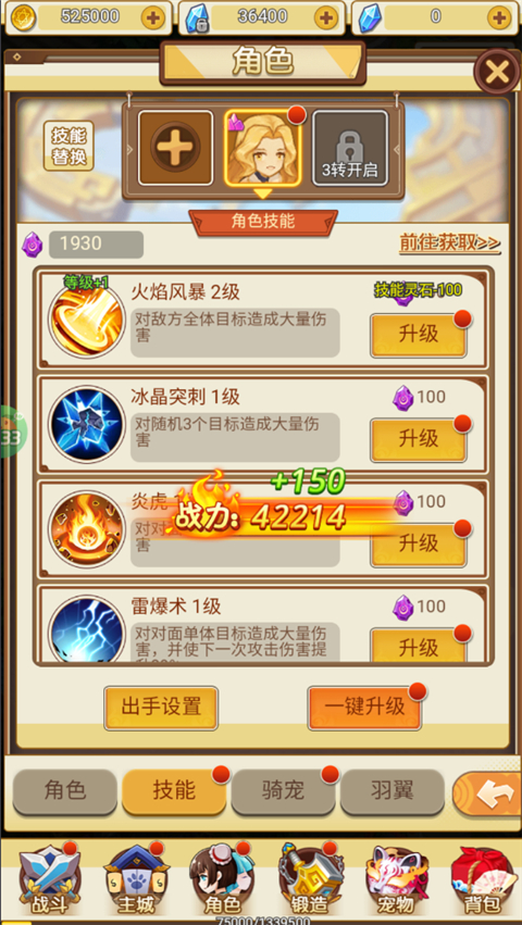 3、游戏全自动不需要玩家操作,玩家点击即可自动前往场景,随着等级的提升你需要培养角色