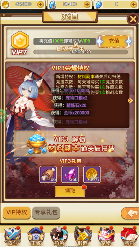 5、另外,游戏上线就送vip7特权,记得在vip板块中领取vip福利