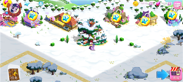 接下来的友谊的魔法攻略讲解的是生产,我再说一下生产。游戏中的商店提供了很多商店,但有别于奇妙动物园中的商店的自动售货,该类商店需要有工人(也就是小马驹)的存在,例如,当你有四个商店而只有三匹小马驹时,你的一家商店就无法进行生产。所以,在前期没有足够的马驹时,不要过多的建造商店,否则就会出现泡沫经济了。