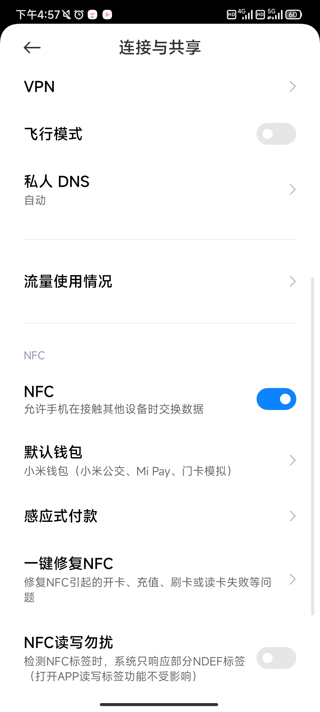 1、开启NFC功能,在手机设置中启用NFC,确保权限允许应用访问NFC模块。