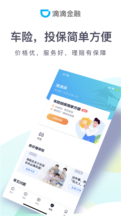 滴滴金融app是一款一站式的可信赖金融服务平台,依托于滴滴出行生态圈,将传统金融与互联网技术结合,以服务每个司机和乘客为使命,为用户提供滴滴保险、信贷、理财、支付等服务,致力于打造满足用户需求的金融服务。不仅帮助用户可以实现理财,也可以达到借款和分期购车的服务,还能帮助那些资金周转不开的朋友们解决问题,而且利息是根据个人信用情况进行综合评估,每个用户的综合评估情况不同,利率也会有所不同,还款的周期长,帮助缓解大家的燃眉之急。此外,滴滴金融app利用专业风控能力、金融服务能力,与金融合作伙伴联合,共同为车主、滴滴出行生态内合作伙伴提供性价比、安全度更高的金融服务。