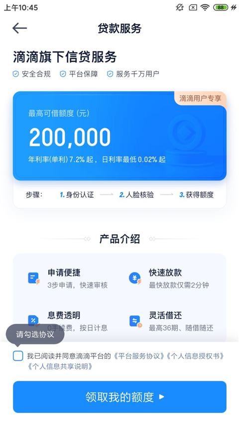 滴水贷是一款互联网贷款产品,通过滴滴出行平台和合法金融机构合作,为用户提供安全的借款服务。