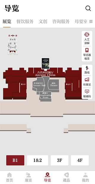 3、如果用户正在实地进行参观,还可以打开【导览】页,了解国博的基本构造,规划自己的参观路线。