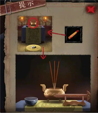 9、拿走桌上的桃木剑点窗户前的桌子的第一个抽屉,先完成这个小游戏,拿走灯芯去厨房,组装成油灯,用火柴点燃拿走糯米,把糯米放入碗里点燃香。触发剧情,本章完。
