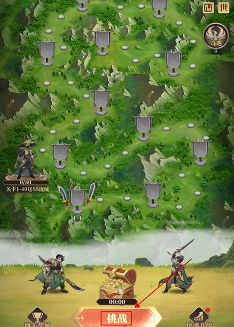 2、抽取到武将后玩家可以进入关卡页,开始关卡挑战。