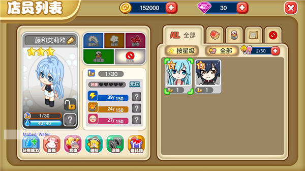 招募店员 在召唤店员系统中招募不同等级的店员,并根据他们的属性安排工作。
