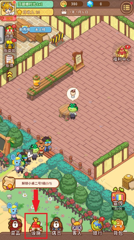 1、点击下方的设施,可以查看餐厅中的设施情况。