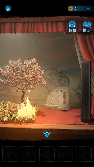3、之后将玉蝴蝶镶嵌进梁少平墓的缺口得到线索。根据线索打开大厅右边的图案得到红绣鞋。
