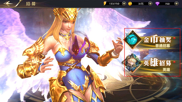 6、玩家可以通过招募来抽取解锁新的英雄,有金币抽奖和英雄招募两种方式。