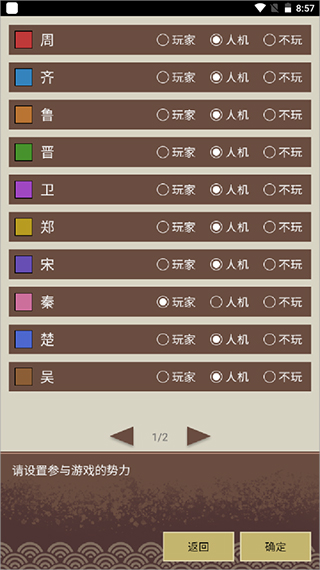 游戏画面非常简约,融合多种战棋元素,在巨幅地图上展现你的绝妙策略,掌控主线剧情,以文字加图画的方式来演绎春秋战国的战争割据场面。在这里你可以招募人才、任命官员、训练士兵、调遣军队、攻打城池,游戏内还有内政模式,玩家既要增加国家的人口和财政,又要对外扩张城池,每一步都要经过深思熟虑。可以效仿古人采用先秦时期的远攻近邻的方式联合邻国攻打强国,慢慢扩大自己的实力。