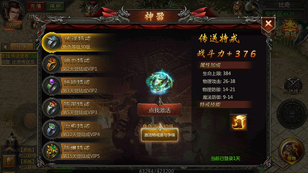5、英雄内还有神器特戒、BOSS、英雄等丰富玩法系统可以解锁,丰富又有趣。