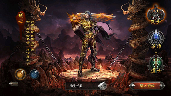 1、玩家进入游戏就可以在战、法、道三种职业内选择一种进入游戏,开启传奇打金之旅。