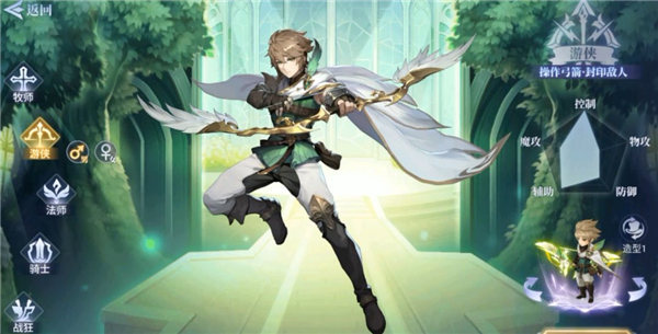 定位是辅助和控制。虽然除了辅助控制外的能力平平,但在队伍中扮演着不可或缺的角色。能够操纵弓箭封印敌人,被他抓到可就别想逃走了。