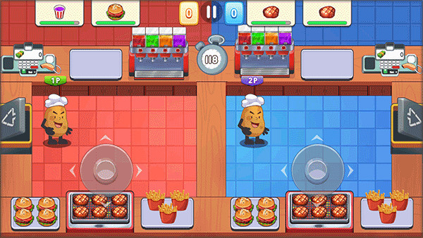 1、一款好玩的厨房对战游戏,采用的是卡通的画风,两人合作完成订单