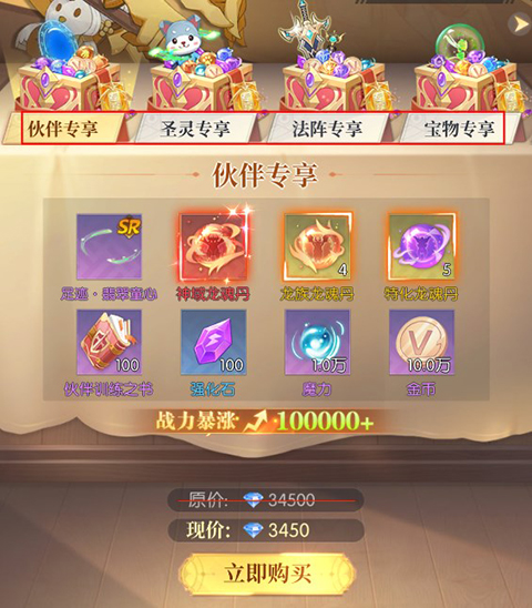 6、专享礼包:使用钻石即可解锁,内含龙魂丹等高级资源道具。