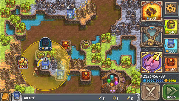 被诅咒的宝藏2手机版最有特色的地方,就是加入了魔兽争霸那样的运营思路,我们在建造塔的同时,可以选择金矿、城市来生产金币,给自己使用,也让策略变得各加多样了,塔流、发育流,都是值得考虑的