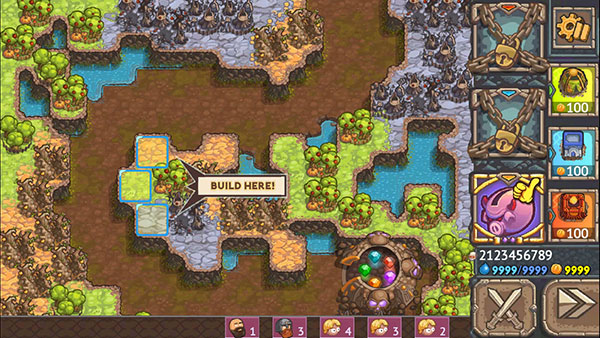 被诅咒的宝藏2还为玩家们提供了三种基本炮塔,分别可以建在草地,雪山,荒地三种地形上,但随着炮塔的经验增长,升级后可以发展出不同能力炮塔,你将要通过防御塔来阻止敌人获取宝藏。