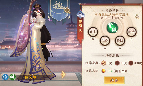 1、武将可以消耗培养丹来进行对武将的培养,培养武将可显著提升武将的属性(攻击、双防与生命)。