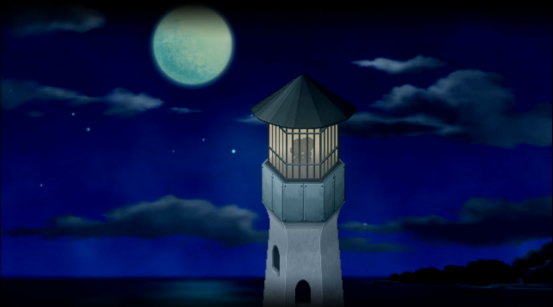 约翰和莉娃坐在灯塔的角落,莉娃对结婚并没有任何实感,约翰则觉得获得了更多的责任,两人在这里为灯塔取下安雅的名字,在约翰的邀约下,两人到灯塔中缓缓跳起了舞步,直到黎明为这浪漫的夜染上暖黄,直到灯塔见证了两人的誓言。