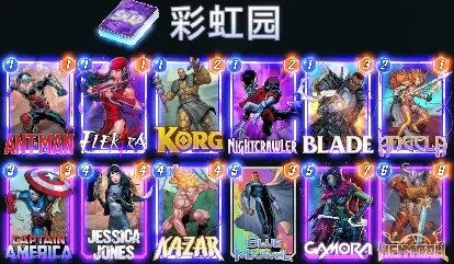关于哪一个才是经典版本,也是众说纷纭,我们这就把MarvelSnapZone上推荐的版本当做经典款吧。这套牌是在上面的基础上,把1费牌加到了6张,同时带了狂攻去给卡扎尔和蓝惊奇的持续效果加倍,属于在铺场然后buff这个思路上走的最远的一个版本。