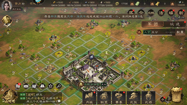 1、首先进入【山河志】便是你的主城,你可以在城中实现练兵、招募能人异士,建设城防、扩充兵力、屯粮等操作。