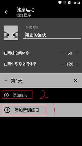7、之后用同样的方式设置后续动作,规定好一周几天锻炼,什么时候休息;