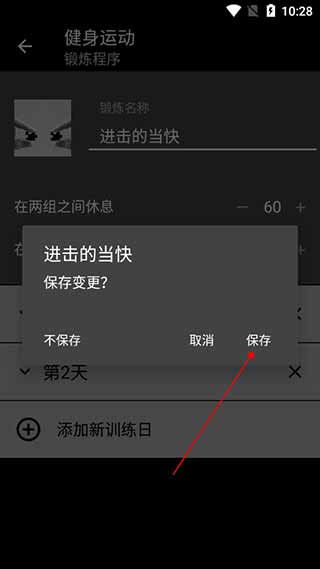 3、先点击添加新训练日,然后点击添加练习;