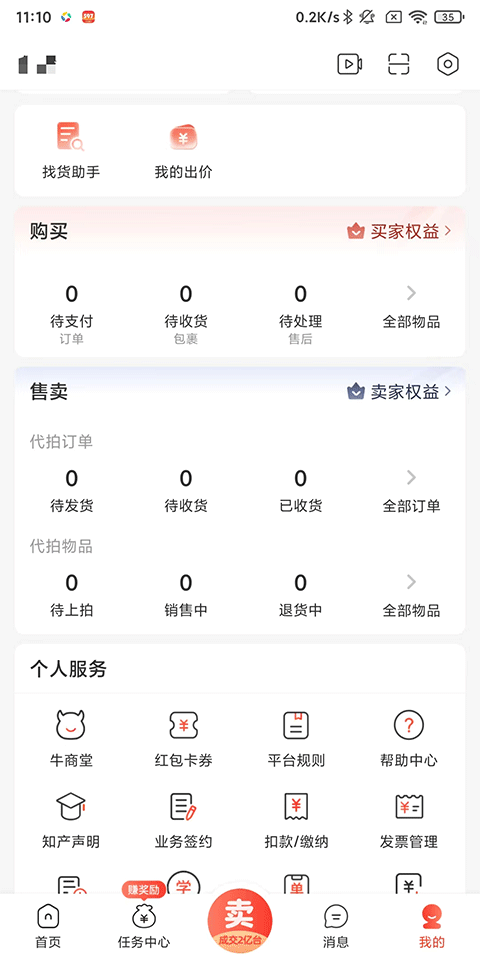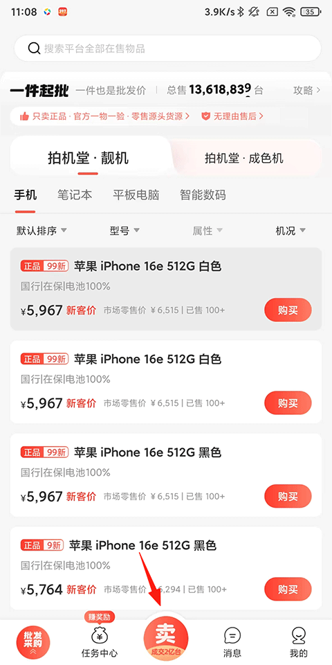 1、打开拍机堂APP,点击屏幕正下方的“卖”按钮;