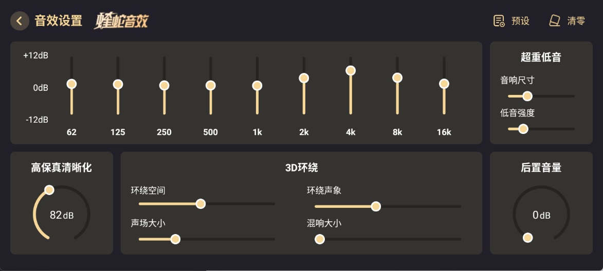 3、在自定义音效界面中,可自由调节各项音效参数,打造专属听感。