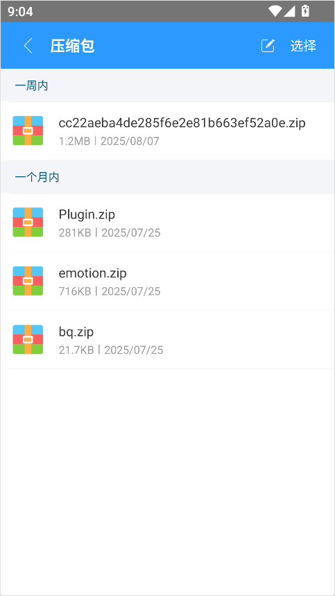 2、压缩包下载完成之后在手机的储存中找到所下载好的文件。
