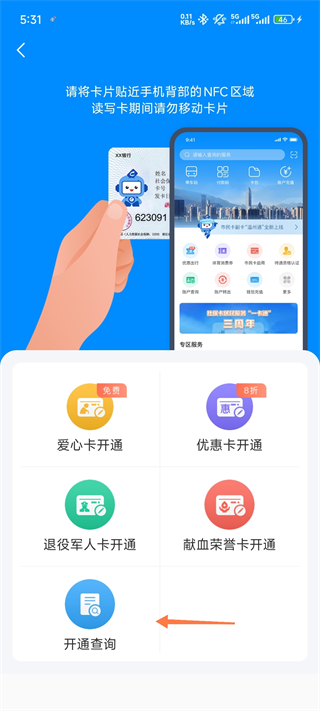 4、请将卡片贴近手机背部NFC区域读写卡期间请勿移动卡片