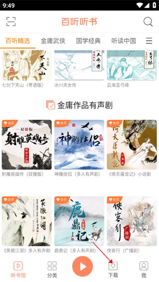 1、金庸武侠:正版授权,朗读版、广播剧、粤语版,带你畅游金庸武侠世界。