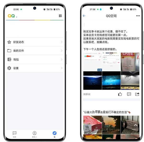 登录后,可以正常查看QQ空间、钱包、我的文件等功能,虽然没多少人用。