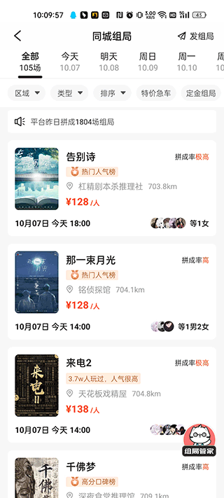 谜圈是一款具有超高人气的剧本杀组队交流社交平台,喜欢剧本杀以及密室逃脱爱好者千万不能错过,在这里你可以找到和你趣味相投的剧本杀伙伴,一起交流分享好剧本和喜欢的密室主题,还可以互相安利当地优质剧本杀线下店以及密室主题店。你还可以在上面优选店铺,以较低的价格玩到高质量的本子,还有公共平台可以给玩过的本子进行评分,一起趣味互动,都是货真价实的真人点评哦。不仅如此,还可以线下组队一起玩,享受同行优惠,每天都有超值优惠,可以以超低价格拿下热门本子。